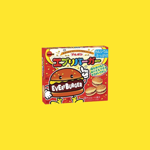 A playful snack that looks like a mini hamburger but tastes like a sweet delight — crispy biscuit “buns”, topped with sesame seeds, sandwiching a smooth milk-chocolate centre (with a hint of white-chocolate “cheese” layer). Manufactured by the Japanese brand Bourbon, it’s perfect for fun snacking or gifting.