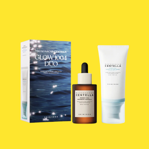 This duo set features two powerhouse K-beauty essentials: the “Madagascar Centella Hyalu-Cica Water-Fit Sun Serum” (SPF 50+ PA++++) and the “Madagascar Centella Probio-Cica Intensive Ampoule”. The sun serum delivers broad-spectrum sun protection while hydrating and calming the skin with Centella Asiatica extract and a blend of seven sprout extracts.