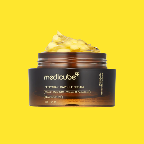 Dual-texture format: gel + vitamin-C capsules for mixable richness